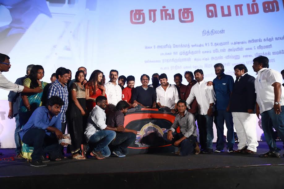 முன்னதாக காலையில் இந்த“குரங்கு பொம்மை” படத்தின் பாடல்கள் வெளியீடு சத்யம் தியேட்டரில் நடைபெற்றது. இயக்குநர் பாரதிராஜா, நடிகர் எஸ்.வி.சேகர், நடிகர் இயக்குநர் மனோபாலா, நடிகர் இயக்குநர் பார்த்திபன், இயக்குநர் தரணி, நடிகர் சிபிராஜ், நடிகர் விதார்த், தயாரிப்பாளர், நடிகர் பி.எல்.தேனப்பன், தயாரிப்பாளர் ஞானவேல்ராஜா, நடிகர் மைம்கோபி, டான்ஸ் மாஸ்டர் ராதிகா, ஸ்ரேயா ஸ்ரீ மூவிஸ் LLP நிறுவனத்தின் நிர்வாக தயாரிப்பாளர் கண்ணன், உள்பட பலர் கலந்துகொண்டனர்.