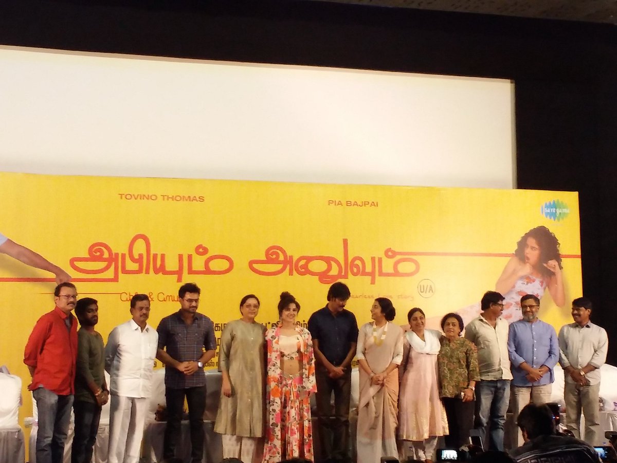சரிகம வழங்கும் யூட்லி ஃபிலிம்ஸ் தயாரித்திருக்கும் படம் அபியும் அனுவும். தமிழ் மற்றும் மலையாளத்தில் தயாராகி இருக்கும் இந்த படத்தில் டொவினோ தாமஸ், பியா பாஜ்பாய், பிரபு, சுஹாசினி, ரோகிணி ஆகியோர் நடித்திருக்கிறார்கள். தரண் இசையமைத்திருக்கும் இந்த படத்தை பி ஆர் விஜயலக்ஷ்மி இயக்கியிருக்கிறார். இந்த படத்தின் பத்திரிக்கையாளர் சந்திப்பு சென்னையில் நடைபெற்றது.