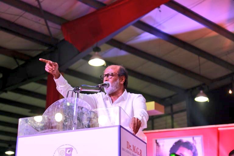 சென்னை வேலப்பன் சாவடியில் உள்ள எம்.ஜி.ஆர் கல்வி மற்றும் ஆராய்ச்சி நிறுவனத்தில் நிறுவப்பட்டுள்ள எம்.ஜி.ஆர் சிலையை, ரஜினிகாந்த் திறந்துவைத்தார். அரசியல் அறிவிப்புக்குப் பின், ரஜினிகாந்த் பங்கேற்கும் முதல் நிகழ்ச்சி இதுவாகும். அந்த விழாவில் பங்கேற்பதற்காக வெள்ளை வேட்டி, வெள்ளைச் சட்டையில் வந்தவரை வரவேற்க சென்னையில் முக்கிய பகுதியான கோயம்பேடு ஸ்தம்பித்து விட்டது. மக்கள் வெள்ளத்தில் நீந்தி சென்று எம்.ஜி.ஆர். சிலையை திறந்து வைத்து பேசிய ரஜினி தன்னுடைய திருமணத்திலும், தனது திருமண மண்டபம் கட்டுவது இரண்டிலும் கேட்காமலே எம்ஜிஆர் உதவியதையும் ரஜினிகாந்த் நெகிழ்ச்சியுடன் குறிப்பிட்டார்.