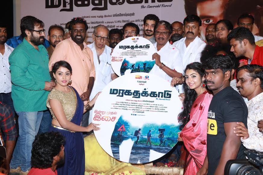 கமல் நடித்த பட்டாம்பூச்சி, தாம்பத்யம் ஒரு சங்கீதம், இவர்கள் வருங்கால தூண்கள் உள்பட 18 படங்களை தயாரித்தவர் ஆர்.ஆர்.பிலிம்ஸ் ரகுநாதன். இவருடைய 19-வது தயாரிப்பாக, உருவாகி யிருக்கும் படம் தான் ‘மரகதக்காடு’. முழுக்க முழுக்க உண்மைச் சம்பவத்தின் அடிப்படையில் உருவாக்கப்பட்டிருக்கும் இந்தப்படத்தில் அஜய், ராஞ்சனா, ஜெயஸ்ரீ, மலையாள டைரக்டர் இலியாஸ் காத்தவன் மற்றும் பலர் நடித்துள்ளனர். மங்களேஸ்வரன் இந்தப்படத்தை இயக்கி உள்ளார். நட்சத்திர பிரகாஷ் ஒளிப்பதிவு செய்ய, சாபு ஜோசப் படத்தொகுப்பை கவனித்துள்ளார். ஜெய்பிரகாஸ் என்ற புதியவர் இசையமைத்துள்ள இந்தப்படத்தின் இசை வெளியீட்டு விழா சாலிகிராமத்தில் உள்ள பிரசாத் லேபில் நடைபெற்றது. இந்த விழாவில் சிறப்பு விருந்தினர்களாக இயக்குனர் இமயம் பாரதிராஜா, இயக்குநர் சுரேஷ் காமாட்சி, தயாரிப்பாளர் சங்க செயலாளர் கதிரேசன், முன்னாள் தயாரிப்பாளர் சங்க தலைவர் கேயார், தயாரிப்பாளர் சோழா பொன்னுரங்கம் ஆகியோர் கலந்துகொண்டு படக்குழுவினரை வாழ்த்தினார்கள்.