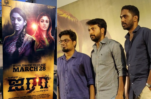 கேஜேஆர் ஸ்டுடியோஸ் சார்பில் கோட்டபாடி ஜே ராஜேஷ் தயாரிக்க, லேடி சூப்பர் ஸ்டார் நயன்தாரா இரட்டை வேடங்களில் நடித்திருக்கும் படம் ‘ஐரா’. கலையரசன், யோகிபாபு ஆகியோர் முன்னணி கதாப்பாத்திரங்களில் நடிக்க, சர்ஜூன் கே.எம் இயக்கியிருக்கிறார். கேஎஸ் சுந்தரமூர்த்தி இசையமைத்திருக்கும் இந்த படத்தை ட்ரைடெண்ட் ஆர்ட்ஸ் ரவீந்திரன் வெளியிடுகிறார். மார்ச் 28ஆம் தேதி உலகமெங்கும் வெளியாகும் இந்த படத்தின் பத்திரிக்கையாளர் சந்திப்பு சென்னையில் நடைபெற்றது.