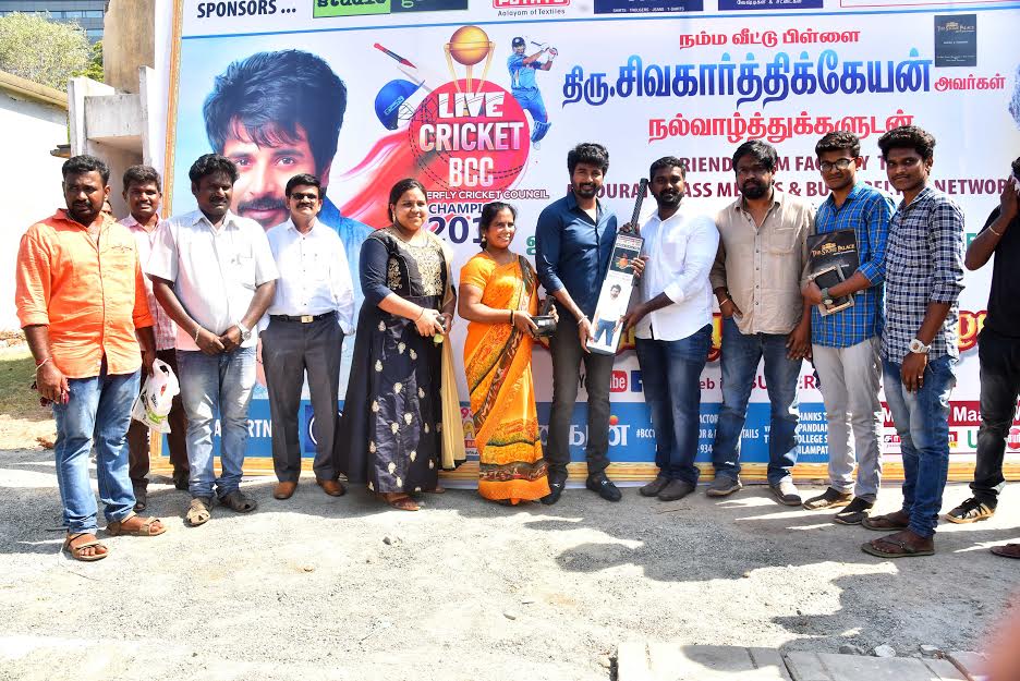 அதன் காரணமாக சிவகார்த்திகேயனிடம் நாங்கள் நடத்தும் கிரிக்கெட் விழாவிற்கு வருகை தருமாறு அன்போடு அழைத்தோம் அவர் இடைவிடாத படப்பிடிப்பில் இருக்கும் காரணத்தால் விழாவில் கலந்து கொள்ள முடியாத சூழ்நிலை இருப்பதால் அதற்கு பதிலாக அவருடைய கனா பட ஹீரோ தர்ஷன் மற்றும் அந்த படத்தில் காமெடியனாக நடித்த டேனியல் பாக்கியராஜ் இருவரையும் அவர் ரசிகர் மன்ற மாநில தலைவர் மோகன் தாஸ் & மிஸ்டர் லோக்கல் பட இயக்குனர் ராஜேஷ்.M என நால்வரையும் விழாவிற்கு அனுப்பி வைத்தார். அது மட்டும் இல்லாமல் வெற்றி பெற்ற அணியினரை சென்னைக்கு வரவழைத்து தன் பொற்கரங்களால் விருதும் விருந்தும் கொடுத்து கௌரவப்படுத்தினார்” என்று சொல்லி பெருமைப்பட்டுக் கொண்டார்கள்.