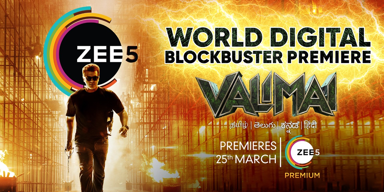 தமிழ் ஓடிடி இயங்குதளங்களில் மறுக்கமுடியாத வெற்றியாளராக, தன்னை நிரூபித்துள்ள ஜீ5 நிறுவனம், தொடர்ந்து பல மொழிகளில் அருமையான திரைப்படங்களையும் அசல் தொடர்களையும் வழங்கி வருகிறது. இதன் சந்தாதாரர்கள் மற்றும் திரைப்பட ஆர்வலர்களுக்கு ஒவ்வொரு மாதமும் புதிய உள்ளடக்கத்துடன் கூடிய சிறப்பு மிகு படைப்புகள் வழங்கப்பட்டு வருகிறது. அந்த வகையில் இப்போது, அஜித் குமாரின் சமீபத்திய ஆக்ஷன் அதிரடி திரைப்படமான ‘வலிமை’ படத்தின் உலகளாவிய டிஜிட்டல் பிளாக்பஸ்டர் பிரீமியர் காட்சியைக் காணும் நேரம் வந்துவிட்டது.