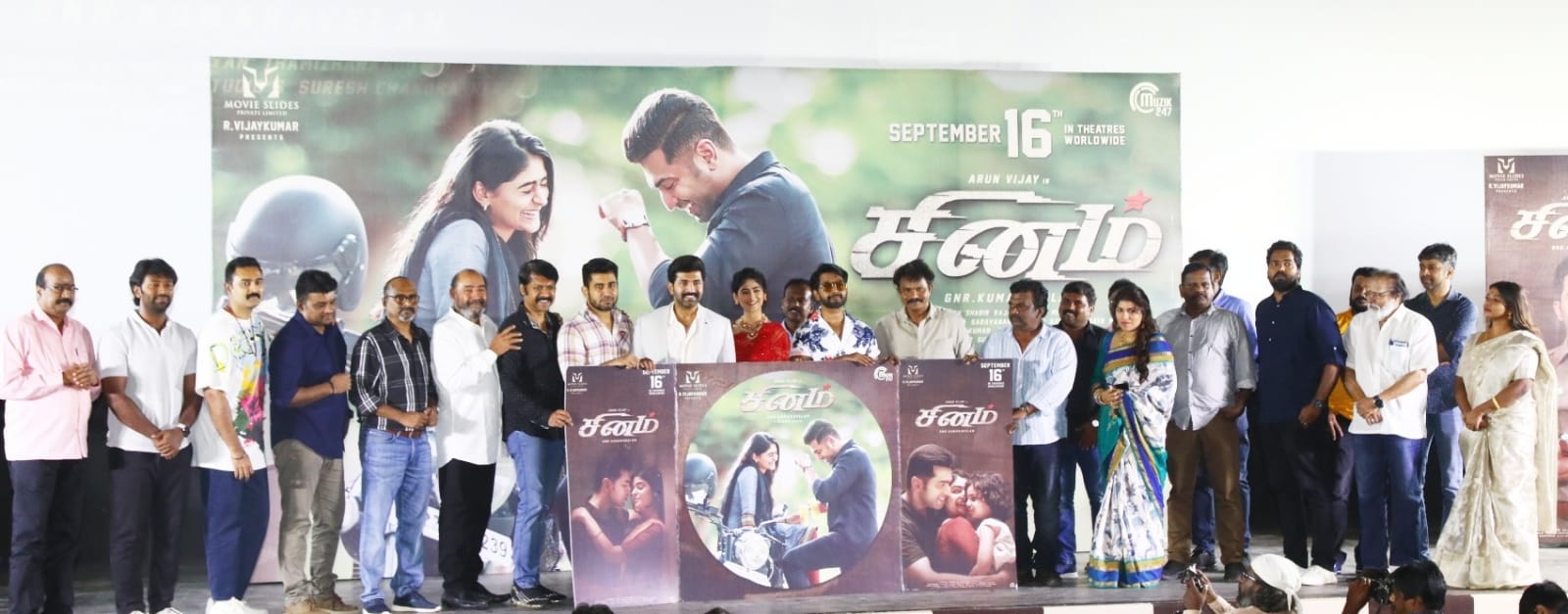 Movie Slides Pvt. Ltd சார்பில் R. விஜயகுமார் தயாரிப்பில், இயக்குநர் GNR குமரவேலன் இயக்கத்தில், அருண் விஜய், பாலக் லால்வானி, நடித்துள்ள திரில்லர் டிராமா திரைப்படம் “சினம்”. விரைவில் திரையரங்குகளில் வெளியாகவுள்ள இப்படத்தின் இசை விழா இன்று கோலகலமாக நடைபெற்றது. இவ்விழாவினில் திரைப்பிரபலஙகளும் படத்தின் குழுவினரும் கலந்துகொண்டனர்.