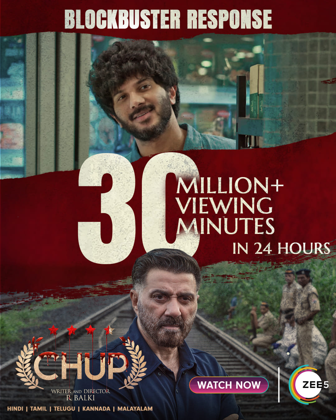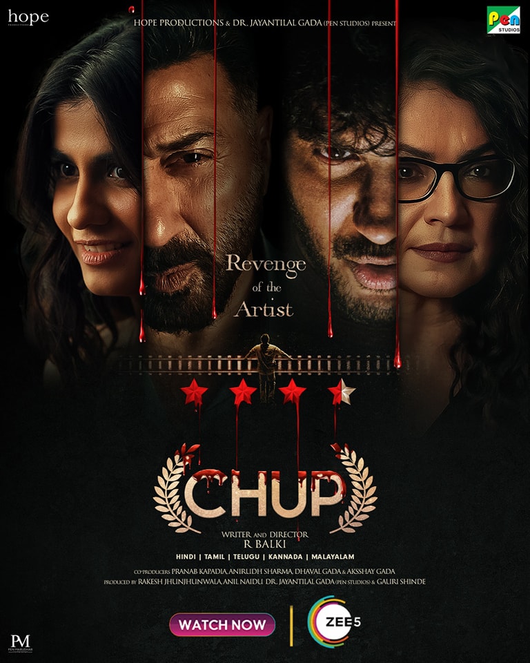 இந்தியாவின் முன்னணி ஸ்ட்ரீமிங் தளமான ஜீ5, ‘சுப்: ரிவெஞ்ச் ஆஃப் தி ஆர்ட்டிஸ்ட்’ (Chup: Revenge of The Artist) இன் உலக டிஜிட்டல் பிரீமியரை அதிகாரப்பூர்வமாக அறிவித்துள்ளது. டாக்டர் ஜெயந்திலால் கடாவின் பென் ஸ்டுடியோ, கௌரி ஷிண்டே, ராகேஷ் ஜுன்ஜுன்வாலா மற்றும் அனில் நாயுடுவின் Hope production தயாரிப்பில், R.பால்கி இயக்கத்தில், சன்னி தியோல், துல்கர் சல்மான் மற்றும் ஸ்ரேயா தன்வந்தரி ஆகியோர் முக்கிய வேடங்களில் நடித்துள்ள, இந்த திரைப்படத்தில் பூஜா பட் மற்றும் சரண்யா பொன்வண்ணன் ஆகியோர் துணை வேடங்களில் நடித்துள்ளனர், மேலும் அமிதாப் பச்சன் ஒரு சிறப்பு கேமியோவில் நடித்து இருக்கிறார். திரையரங்க்குகளில் வெளியான இப்படம் பெரும் வரவேற்பை குவித்தது. தற்போது இந்தி, தெலுங்கு, தமிழ், கன்னடம் மற்றும் மலையாளம் ஆகிய மொழிகளில் 25 நவம்பர் 2022 அன்று ஸ்ட்ரீமிங்க் செய்யப்படவுள்ளது.