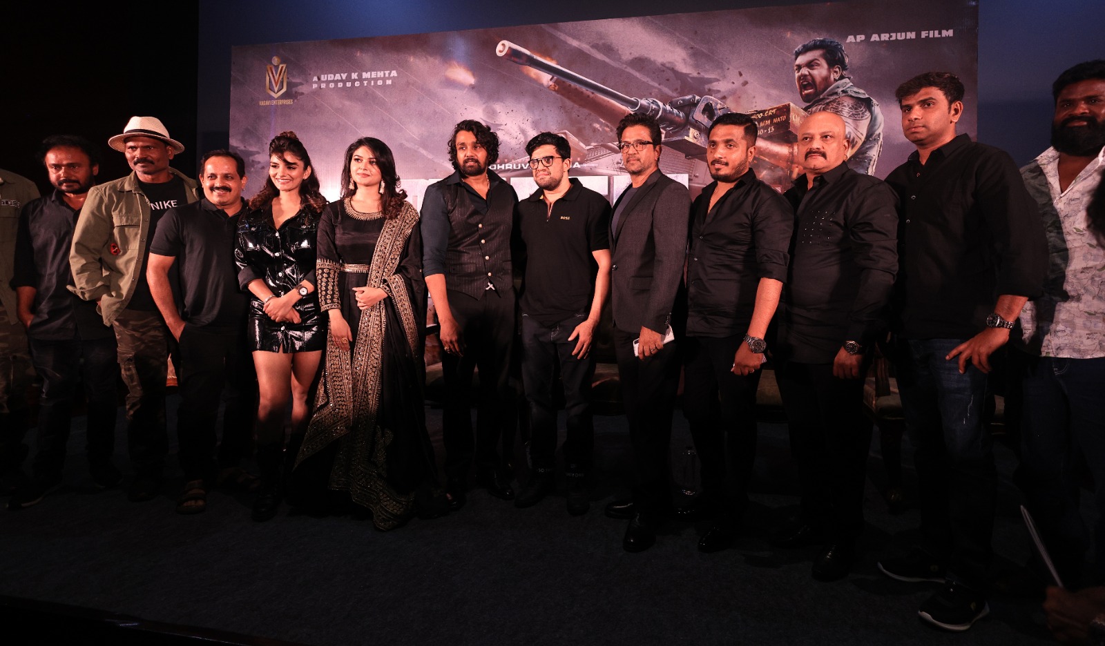 இவ்விழாவினில், தயாரிப்பாளர் உதய் K மேத்தா, ஆக்சன் கிங் அர்ஜுன், இயக்குநர் AP அர்ஜீன், நாயகன் துருவா சர்ஜா, நாயகி வைபவி சாண்டில்யா உட்பட படக்குழுவினர் கலந்துகொண்டனர்.