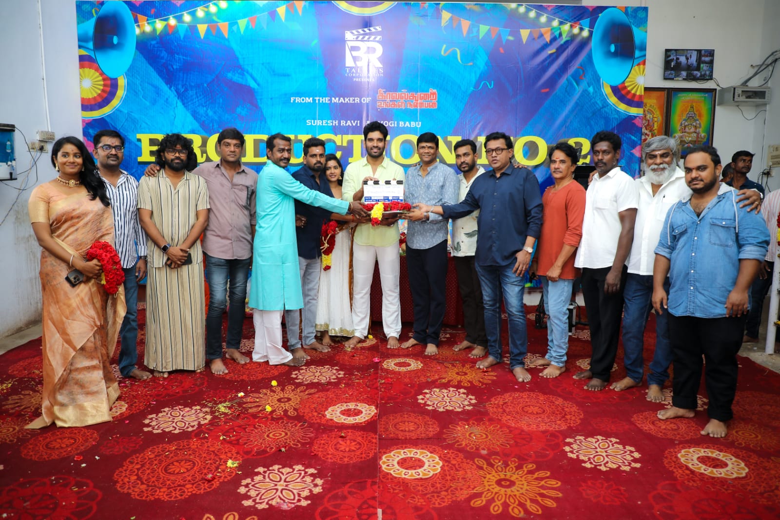 BR Talkies Corporation தயாரிப்பில், நடிகர்கள் சுரேஷ் ரவி, யோகிபாபு இணைந்து நடிக்க, கிராமத்து பின்னணியில் வித்தியாசமாக புதிய காமெடி டிராமா திரைப்படத்தின் படப்பிடிப்பு துவங்கியுள்ளது. கடந்த வாரம் பூஜை நடைபெற்ற நிலையில், காரைக்குடியில் இப்படத்தின் படப்பிடிப்பு கோலாகலமாக துவங்கியது.