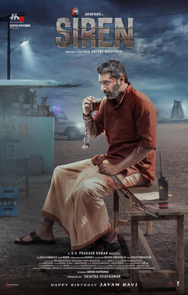 Home Movie Makers சார்பில் தயாரிப்பாளர் சுஜாதா விஜய்குமார் தயாரிப்பில், தமிழ் திரைத்துறையின் முன்னணி நட்சத்திர நடிகர் ஜெயம் ரவி நடிப்பில் அறிமுக இயக்குநர் ஆண்டனி பாக்யராஜ் இயக்கும், புதிய திரைப்படமான “சைரன்” படத்திலிருந்து, ஜெயம் ரவி கதாப்பாத்திரத்தின் ஃப்ரீபேஸ் லுக் வெளியாகியுள்ளது.