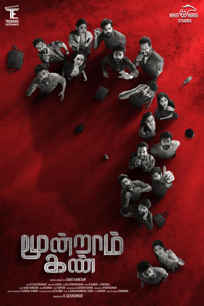Trending entertainment & White horse studios சார்பில் K.சசிகுமார், தயாரிப்பில், அறிமுக இயக்குநர் சகோ கணேசன் இயக்கத்தில், விதார்த், கலையரசன், த்ரிகுண், சந்தோஷ் பிரதாப் ஆகியோரின் நடிப்பில், ஹைப்பர்லிங்க் க்ரைம் திரில்லராக உருவாகும் திரைப்படம் “மூன்றாம் கண்”. இப்படத்தின் இறுதிக்கட்ட படப்பிடிப்பு பரபரப்பாக நடைபெற்று வரும் நிலையில், படத்தின் ஃபர்ஸ்ட் லுக் இன்று வெளியிடப்பட்டுள்ளது.