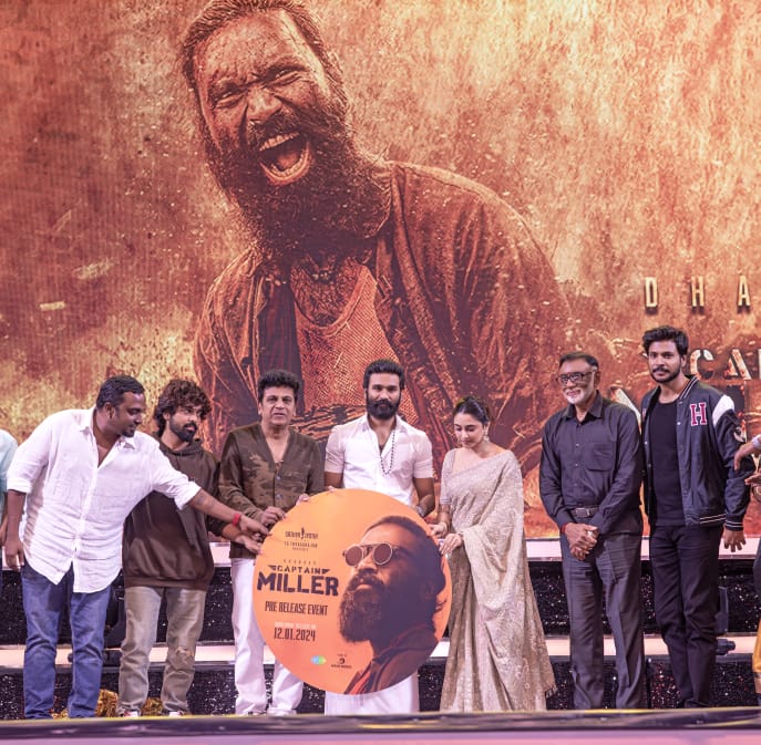 சத்ய ஜோதி பிலிம்ஸ் T.G. தியாகராஜன் வழங்கும், தேசிய விருது பெற்ற நடிகர் தனுஷ் நடிப்பில், இயக்குநர் அருண் மாதேஸ்வரன் இயக்கத்தில், வரலாற்றுப் பின்னணியில் பிரம்மாண்ட ஆக்சன் திரைப்படமாக உருவாகியுள்ள படம் ‘கேப்டன் மில்லர்’. ஜனவரி 12 அன்று திரைக்கு வரவுள்ள, இப்படத்தின் Pre Release Event விழா, சென்னை நேரு உள் விளையாட்டு அரங்கத்தில், படக்குழுவினர், பத்திரிக்கையாளர்கள், சிறப்பு விருந்தினர்கள், ஆயிரக்கணக்கான ரசிகர்கள் முன்னிலையில் கோலாகலமாக நடைபெற்றது.