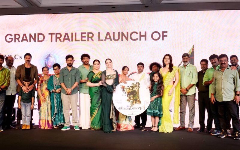 Avni Cinemax (P) Ltd சார்பில் குஷ்பு சுந்தர் மற்றும் Benz Media PVT LTD சார்பில் A.C.S அருண்குமார் தயாரிப்பில், சுந்தர் சி நடித்து, இயக்க, தமன்னா, ராஷி கண்ணா, யோகி பாபு, கோவை சரளா உட்பட எண்ணற்ற நட்சத்திரங்களின் நடிப்பில், அரண்மனை பட வரிசையில் நான்காம் பாகமாக உருவாகியுள்ள திரைப்படம் ‘அரண்மனை 4’. விரைவில் திரைக்கு வரவுள்ள இப்படத்தின் டிரைலர் வெளியீட்டு விழா, திரை நட்சத்திரங்கள் சூழ, பத்திரிக்கை ஊடக நண்பர்கள் முன்னிலையில் கோலாகலமாக நடைபெற்றது.