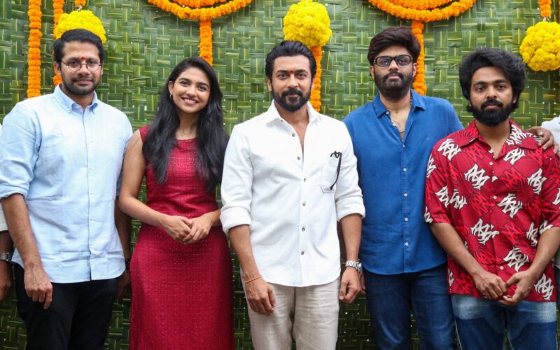 சூர்யா நடிப்பில் வெங்கி அட்லூரி எழுதி இயக்கும் இரு மொழி படமான ‘#சூர்யா 46 ‘ படத்தின் பூஜை ஹைதராபாத்தில் பிரம்மாண்டமாக நடைபெற்றது