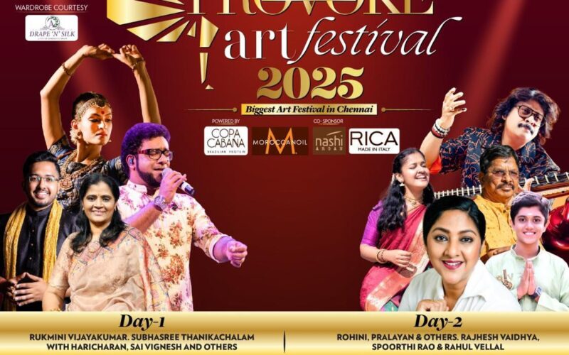 சென்னையில் நவம்பர் 1மற்றும் 2-ம் தேதிகளில் ராயப்பேட்டையில் உள்ள தி மியூசிக் அகாடமியில் PROVOKE LIFESTYLE வழங்கும் PROVOKE ART FESTIVAL – 2025 மூன்றாவது ஆண்டாக நடைபெறவுள்ளது. இந்த சீசனில் சென்னை தனது கலாசார இதயத்துடிப்பை மேலும் உற்சாகமாக்கவுள்ளது.