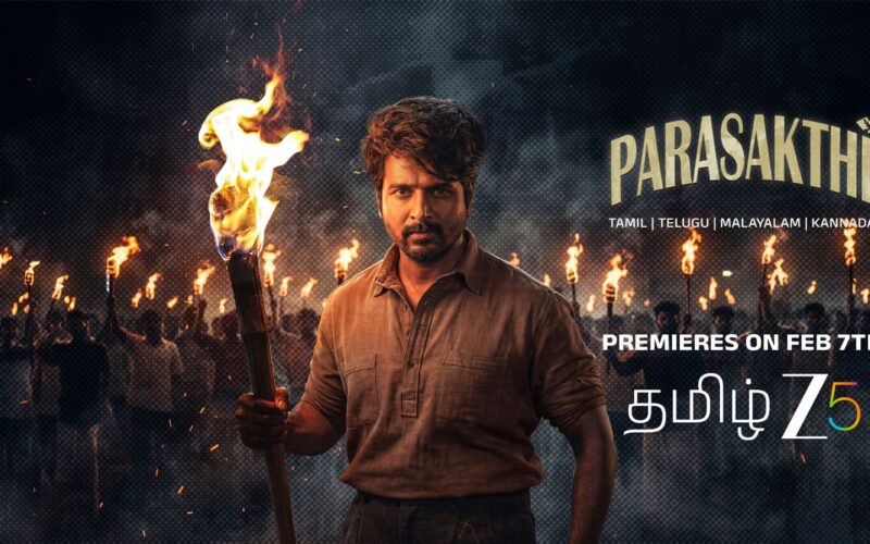 இந்தியாவின் மிகப் பெரிய உள்நாட்டு வீடியோ ஸ்ட்ரீமிங் தளமான ZEE5, மிகவும் எதிர்பார்க்கப்பட்ட பொலிடிகல் ஆக்ஷன் டிராமாவான “பராசக்தி” திரைப்படத்தை 2026 பிப்ரவரி 7 முதல் டிஜிட்டல் பிரீமியராக வெளியிடவுள்ளது. தேசிய விருது பெற்ற இயக்குநர் சுதா கொங்கரா இயக்கத்தில், Dawn Pictures நிறுவனம் சார்பில் ஆகாஷ் பாஸ்கரன் தயாரித்துள்ள இந்தப் படம், தமிழ்நாட்டின் சமூக-அரசியல் வரலாற்றிலிருந்து ஒரு சக்திவாய்ந்த அத்தியாயத்தை திரையில் உயிர்ப்பிக்கிறது.